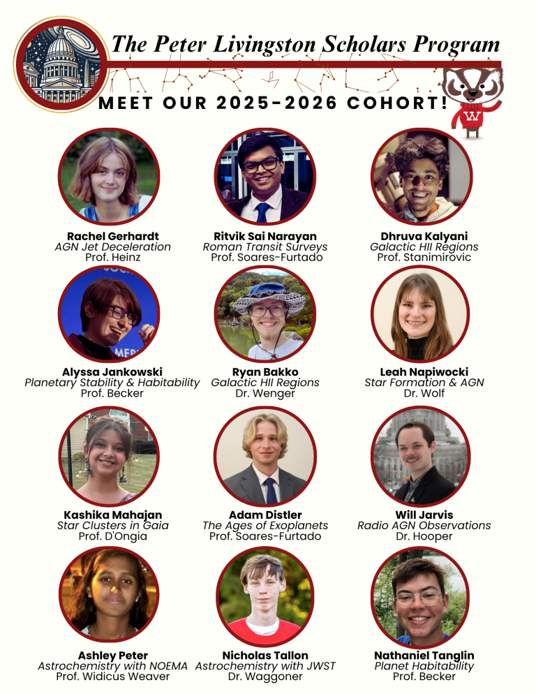 - Ritvik Sai Narayan, Jenna Karcheski, and Eva Stafne are awarded the Wisconsin Space Grant Research Scholarship.